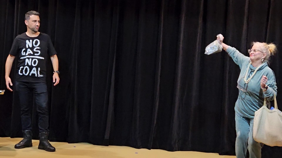 "Identity Crisis, written by Robert Luxford, directed by Melissa Paris and acted by Robin Queree and Scott Clarke, tackled the theme of identity with slick repartee and comic timing."